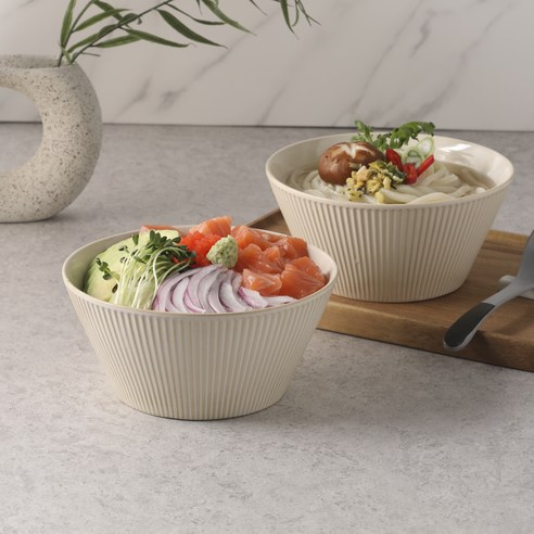 코멧 홈 도자기 다용도 넓은 면기, 크림, 2개