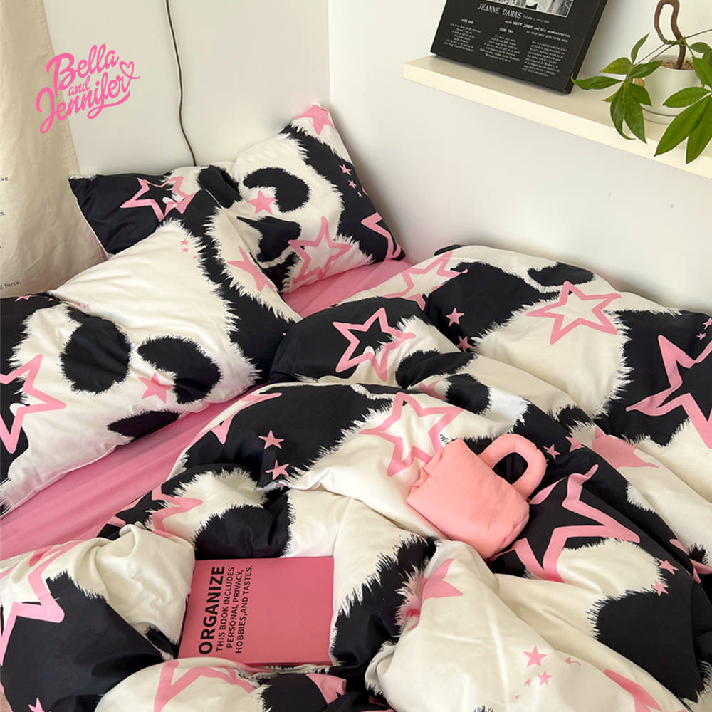 핑크 스타 카우프린트 순면 침구 세트 40수 키치 이불 베개 필로우 커버 슈퍼싱글 퀸 킹 : 벨라앤제니퍼