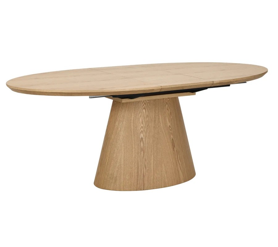 Moderní skandinávský oválný rozkládací jídelní stůl Eklund v naturálním světlém hnědém dubovém provedení 160-200 cm
