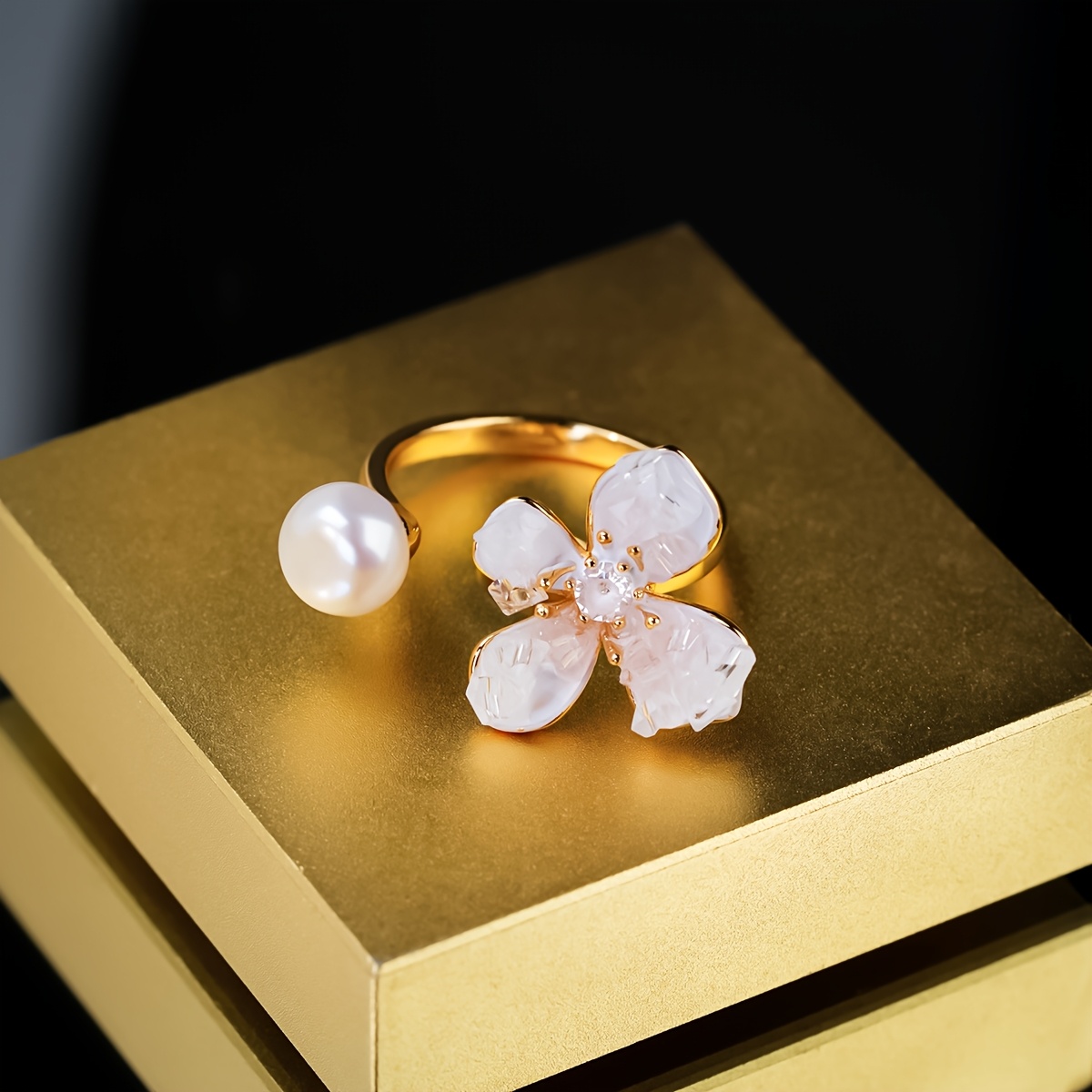 naturlig sötvattenspärlring för kvinnor 18k guldpläterad - Temu Sweden