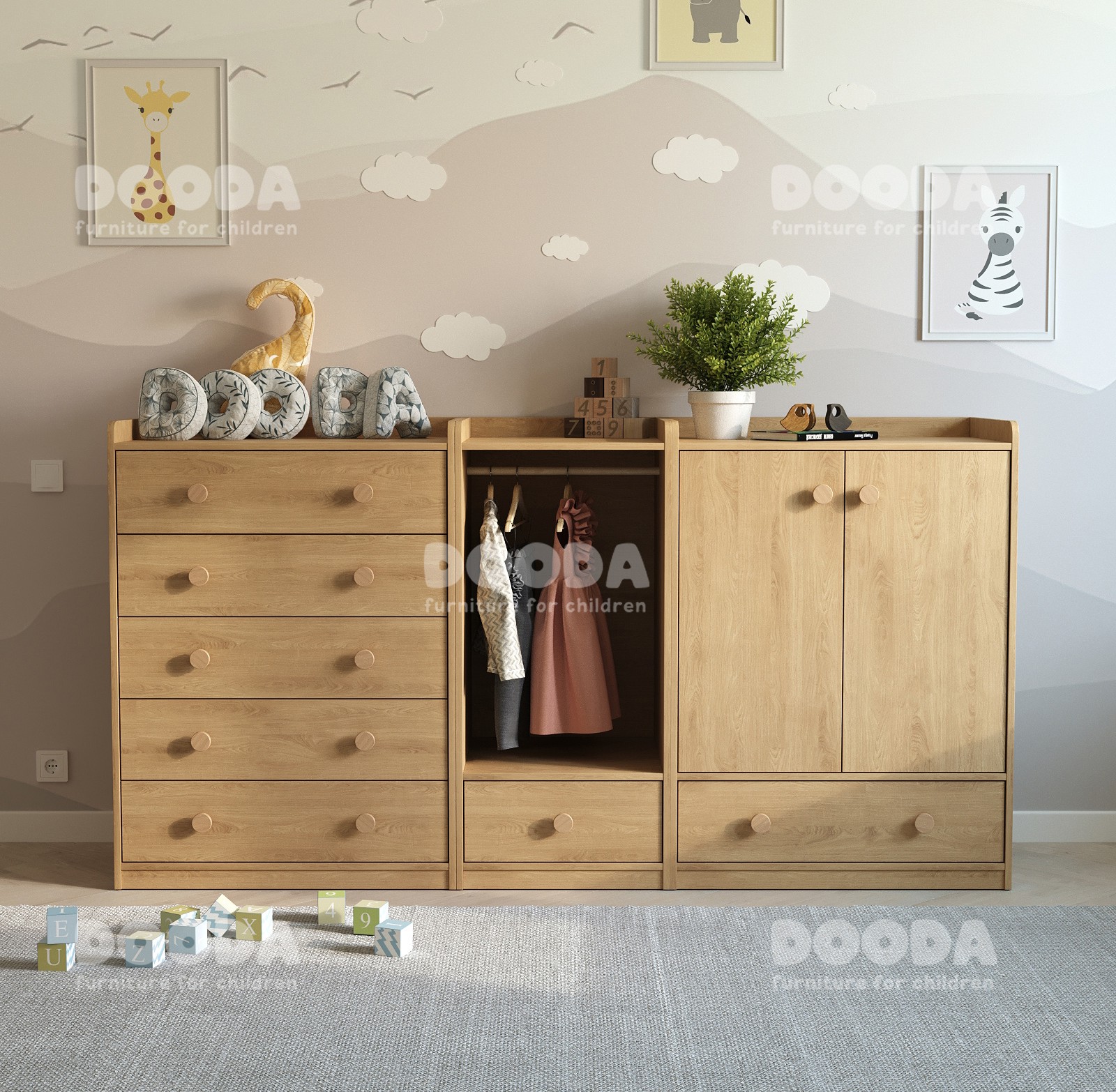 Комплект Монтессори мебели (шкаф, гардероб, комод) Normik