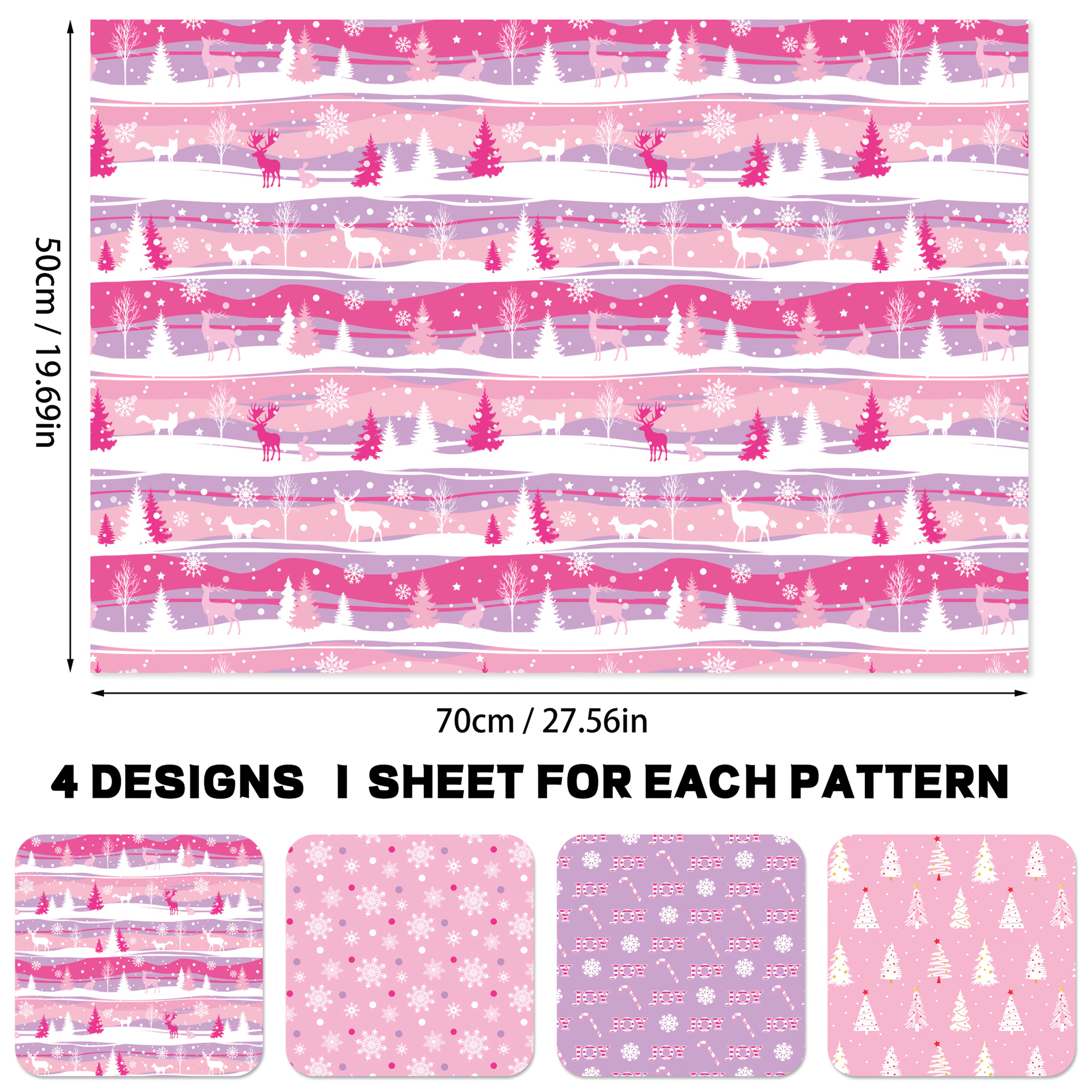 4 sheets christmas wrapping paper roll and reindeer, candy cane , snowflake ideal for holiday gifting decor for holiday presents & crafts, floral packaging, christmas wrapping supplies, pink christmas decorations, gift wraps, rolls of christmas wrapping paper, christmas gift tags, seasonal crafts, festive presents, prints, pastel colors, paper, durable wrapping, holiday , | Check Out Today's Deals Now | Temu United Kingdom