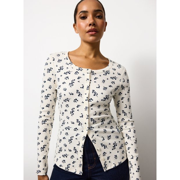 Buy Cream Floral Ribbed Button Through Top 12 | Tops | Tu