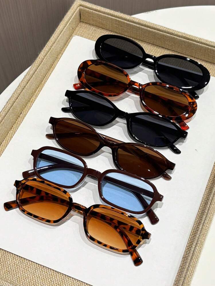 Conjunto de 6 óculos femininos de plástico com armação oval multicolorida em formato de leopardo, estilo , design popular e moderno. Perfeitos para o dia a dia, volta às aulas, looks de fim de semana, compromissos e saídas à noite. Acessórios fashion adequados para todos os formatos de rosto.
