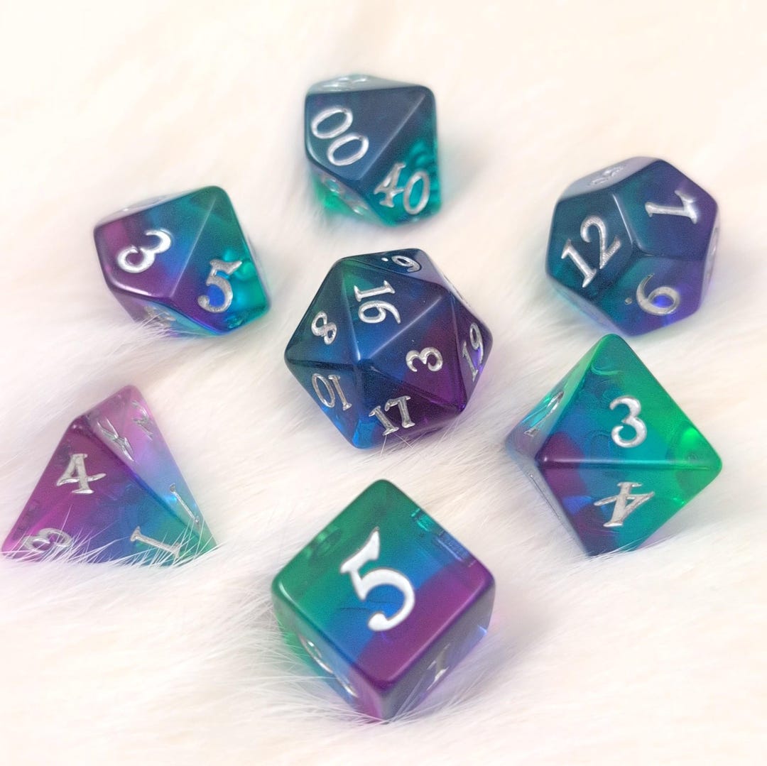 Dice Set - Aurora Layered Resin, Northern Lights Polyhedral, Fantasy Font, 7 Pieces : Original Design