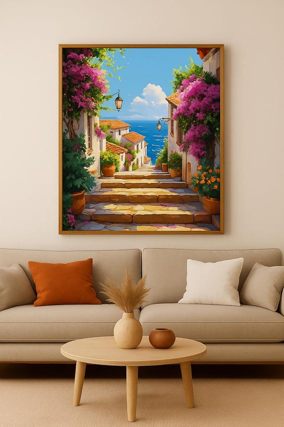 Kit peinture par numéros Ville méditerranéenne : paysage acrylique à faire soi-même, passe-temps relaxant