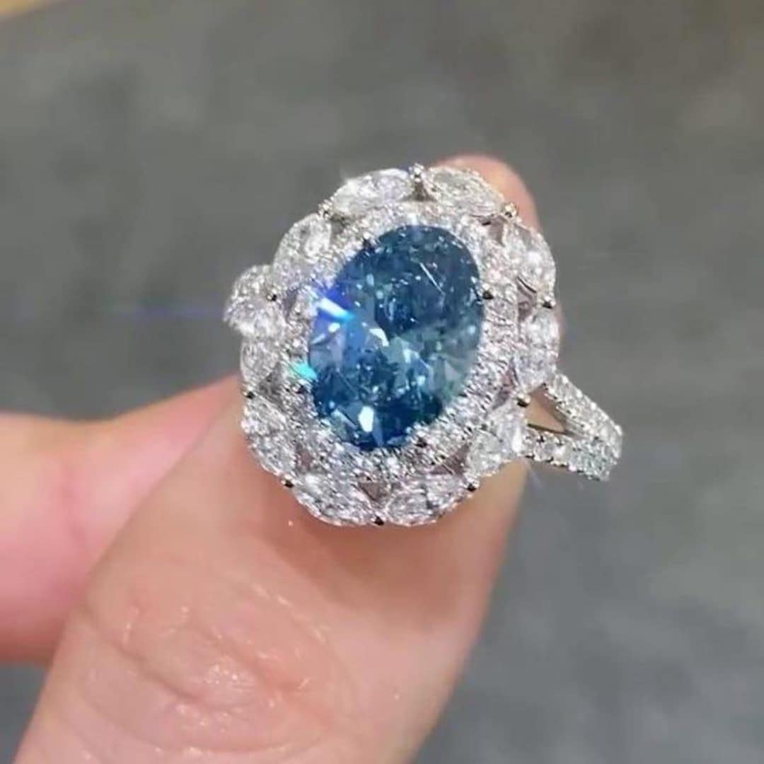 Oval 2.00ct Fancy Blue Lab Grown Diamond Double Halo Ring | White Gold