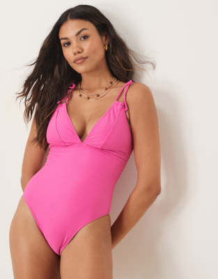 Peek & Beau - Poitrines généreuses - Maillot 1 pièce texturé à décolleté plongeant - Rose | ASOS
