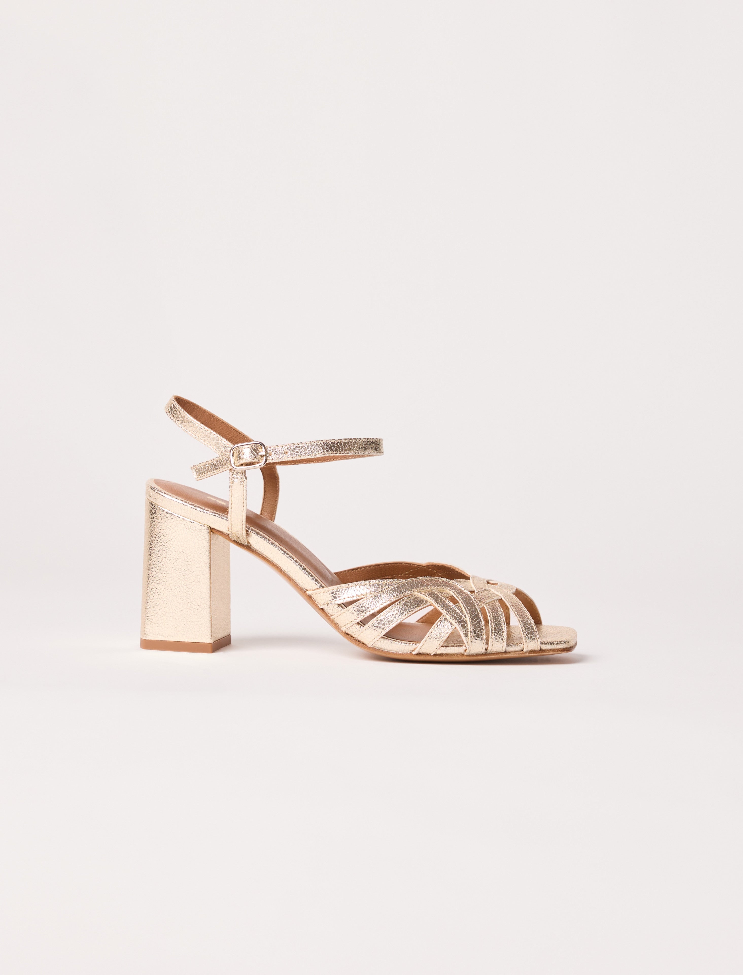 Sandales à Talons en Cuir Doré pour Femme - Modèle Aurore